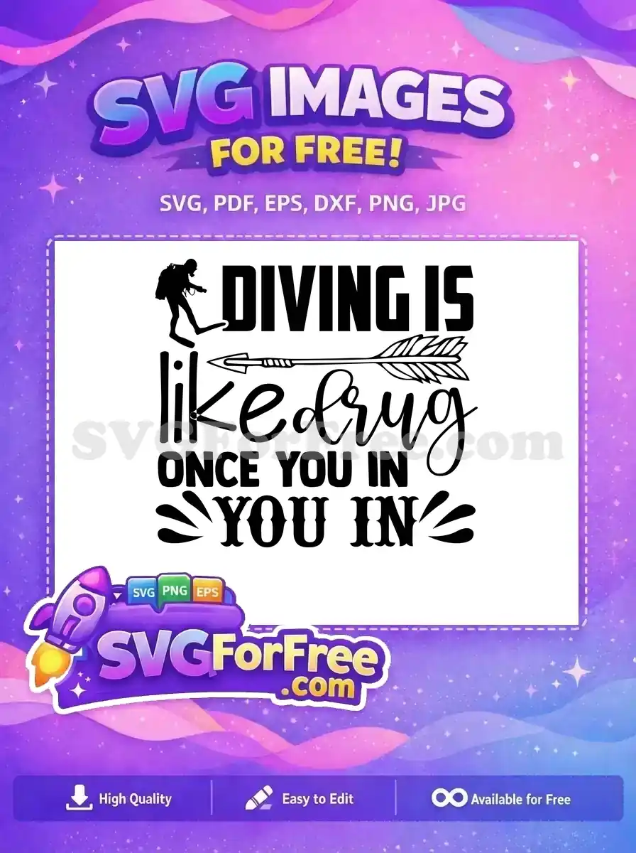 A graphic with the text ‘Diving is like a drug once you in’, using a mix of fonts. A free design file.
