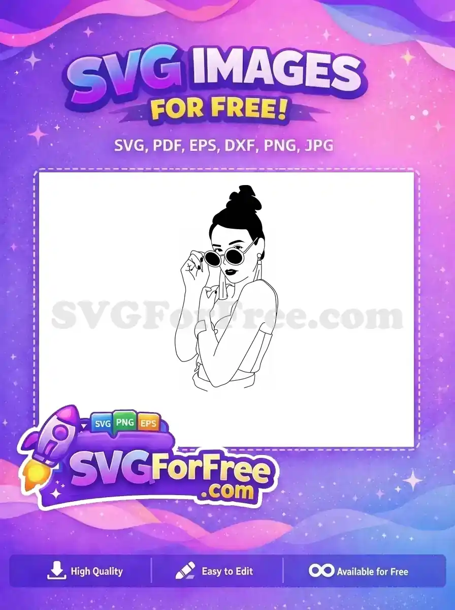 Free Silhouette Woman Free Hat Line Art Free SVG – Instant Download
