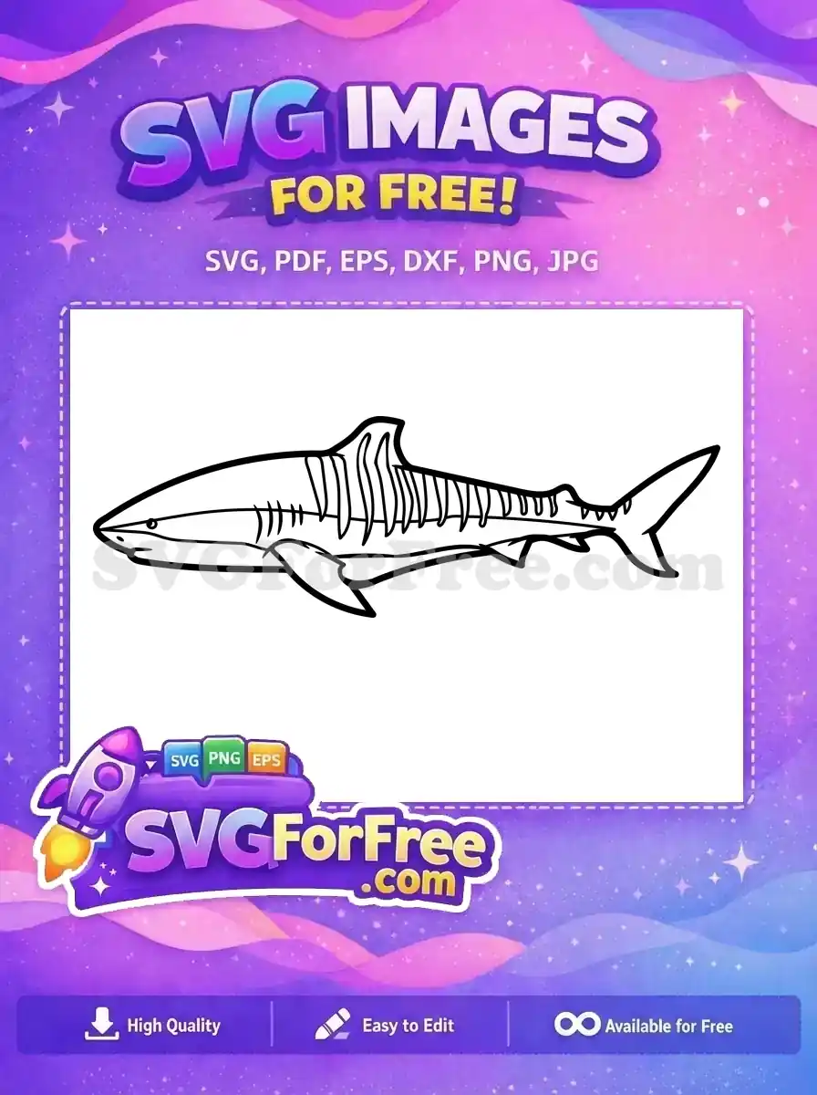 Free Simple Fin Free White Shark Silhouette Cartoon Free SVG – Instant Download