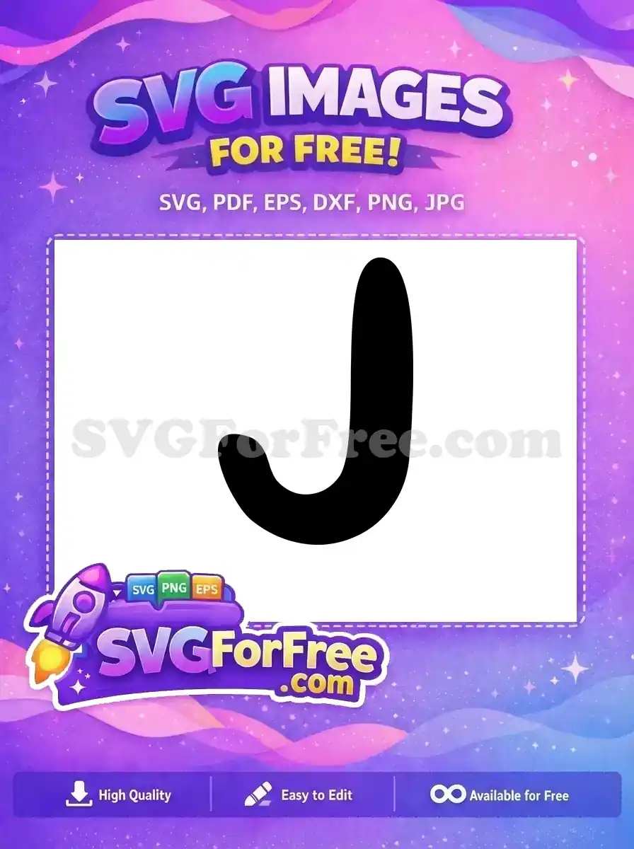 A no-cost vector of the uppercase letter J, designed with a thick, consistent stroke and a simple hook.