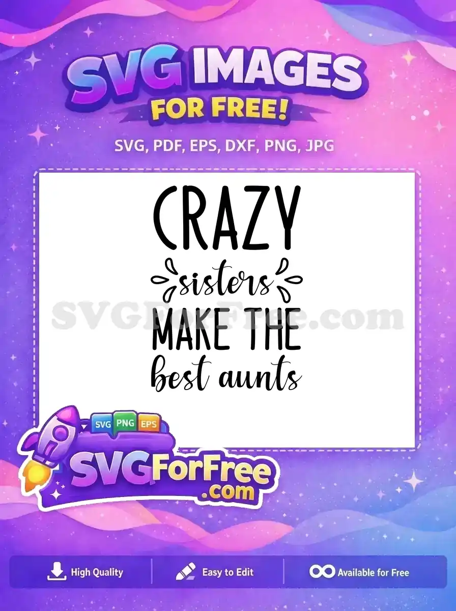 Complimentary text graphic: “Crazy sisters make the best aunts” with a fun, decorative floral wreath detail.
