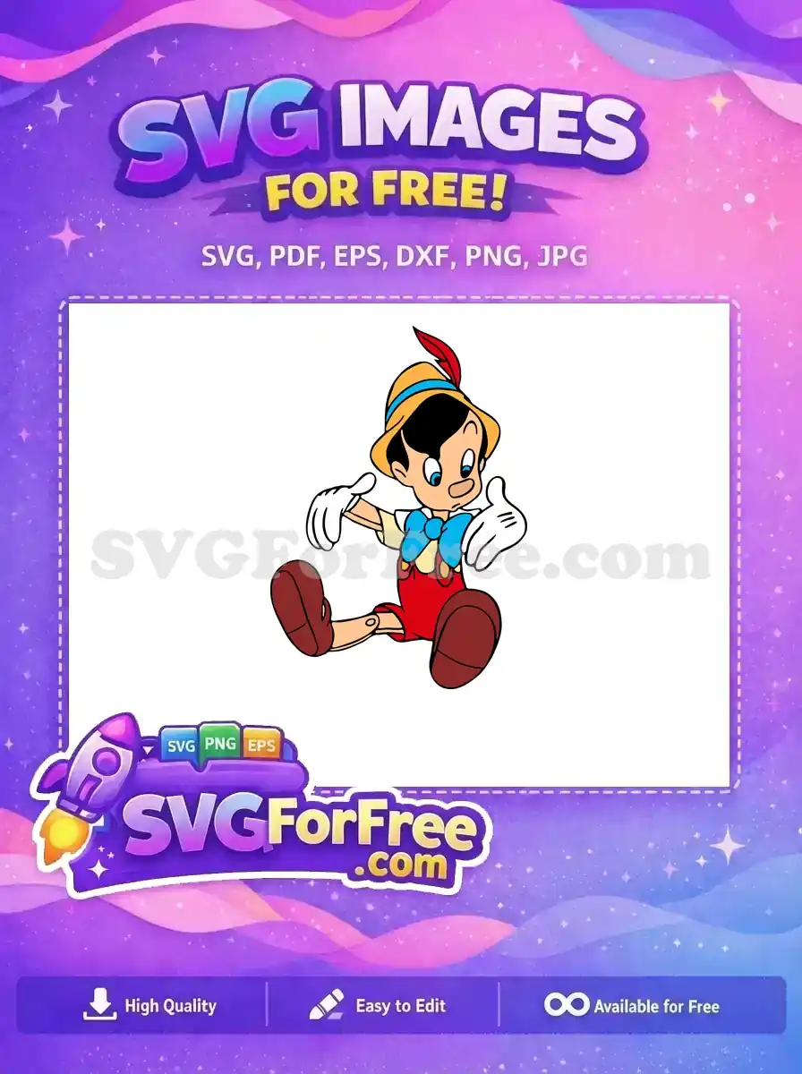 Free Sitting Puppet Free Blue Bowtie Pinocchio Free SVG – Instant Download