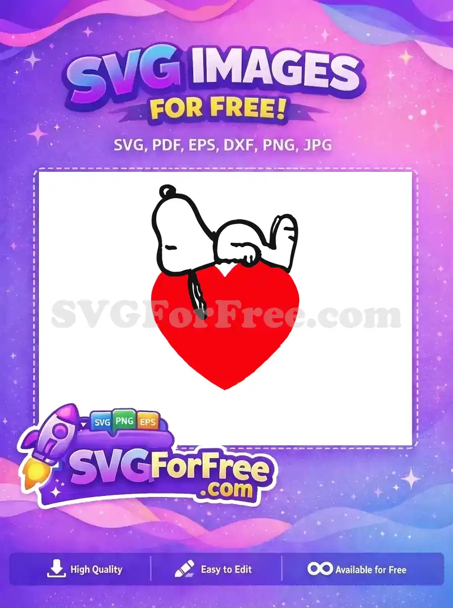 This free design features a cute sleeping Snoopy on a red heart, perfect for holiday-themed projects.