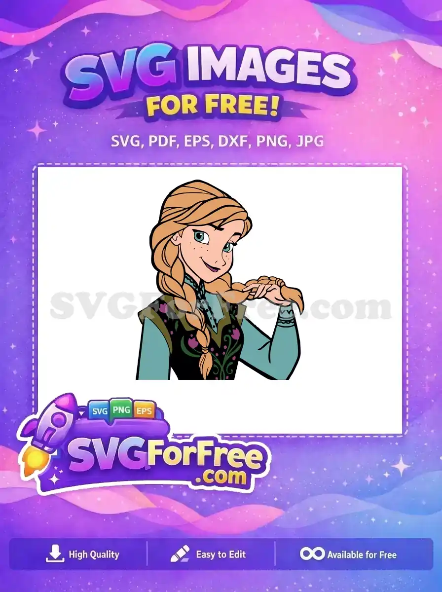 Free Smiling Anna Free Braided Hair Frozen Movie Free SVG 1 – Instant Download