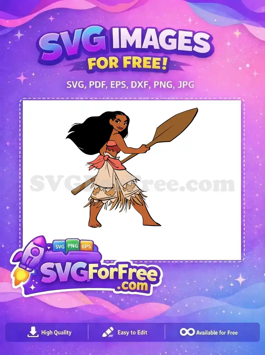 Free Smiling Brave Moana Free Paddle Pose Moana Free SVG – Instant Download