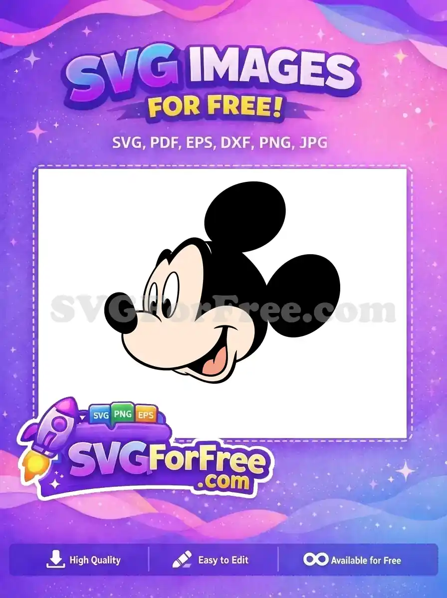 Profile view of Mickey’s face smiling warmly, available as a no-cost SVG for your creative needs.
