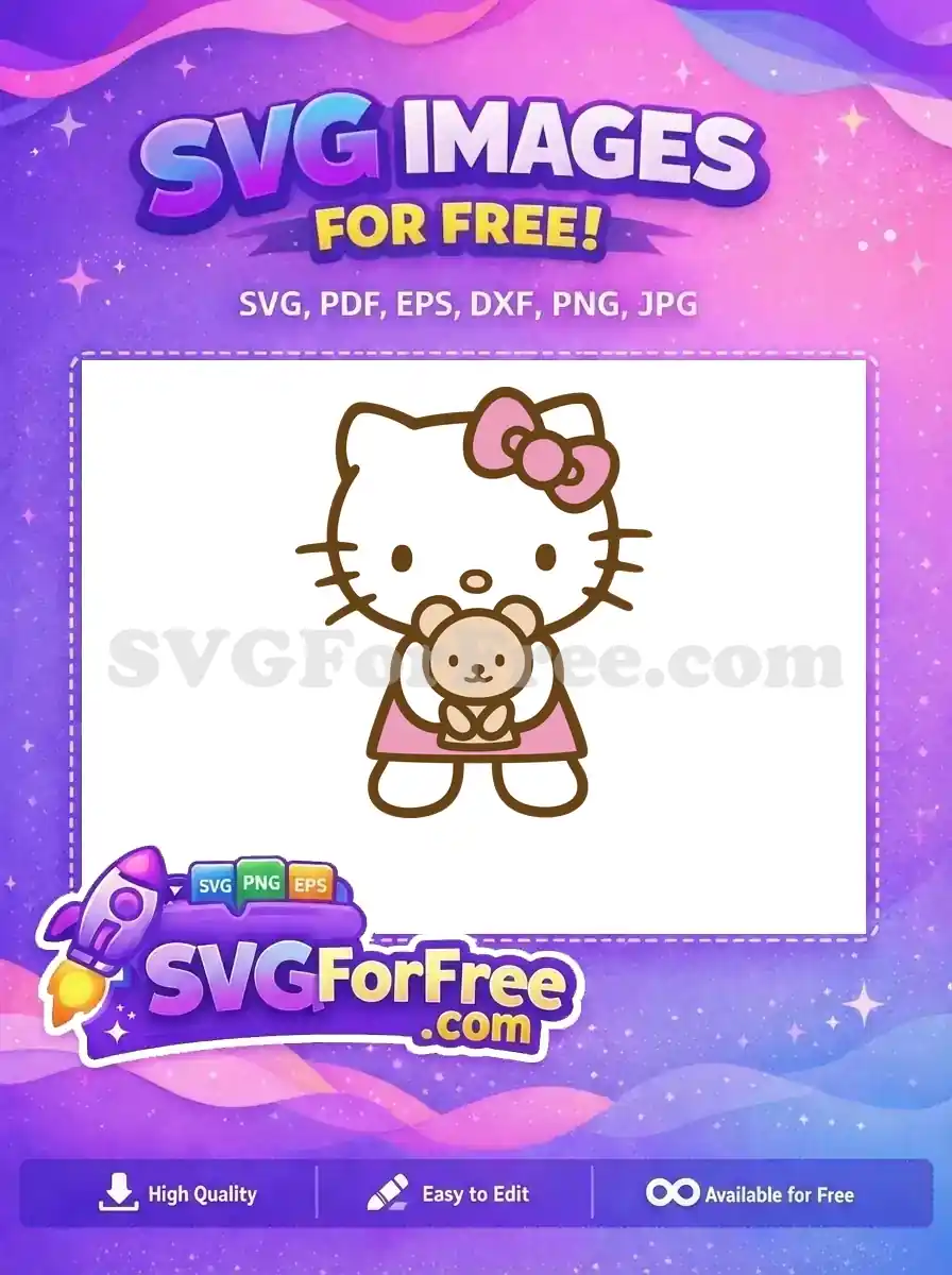 Free Smiling Kitty Free Hugging Teddy Bear Hello Kitty Free SVG – Instant Download