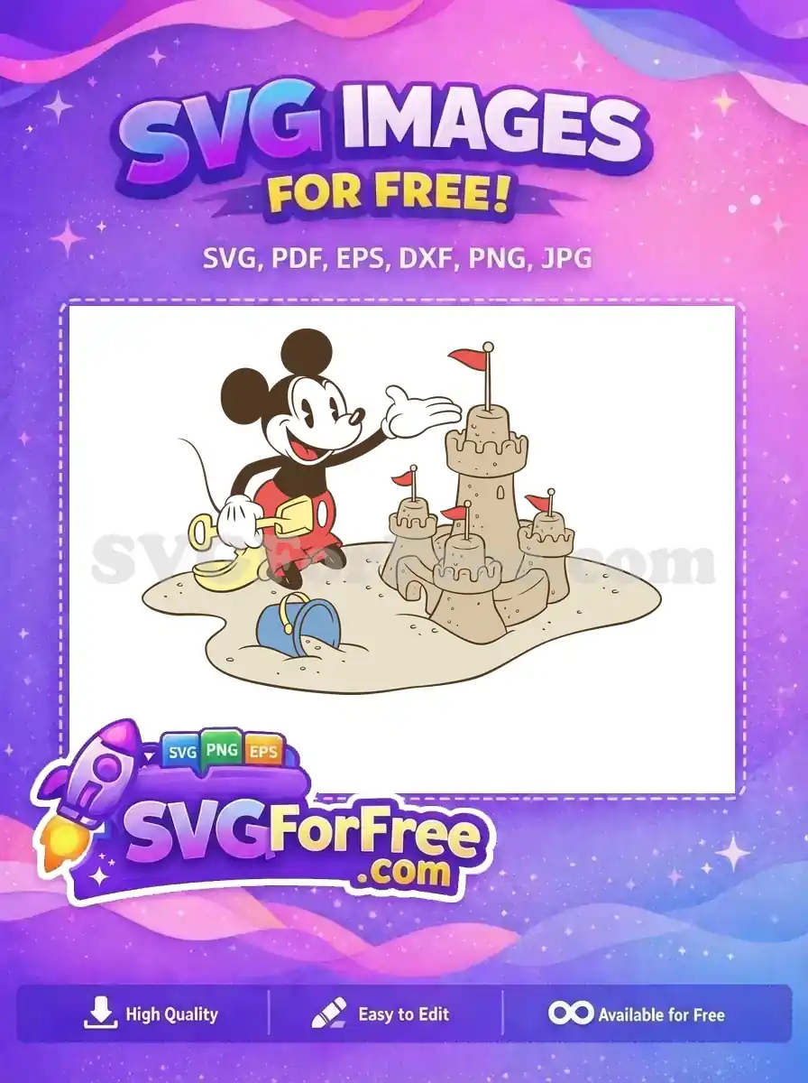 Free Smiling Mickey Free Sandcastle Disney Free SVG – Instant Download
