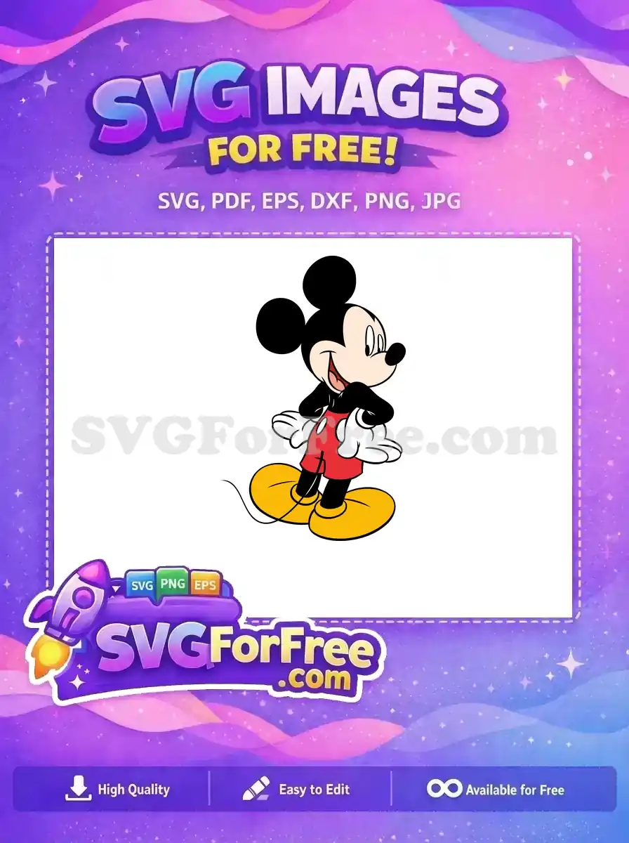 Free Smiling Mickey Mouse Free Classic Pose Disney Free SVG 2 – Instant Download