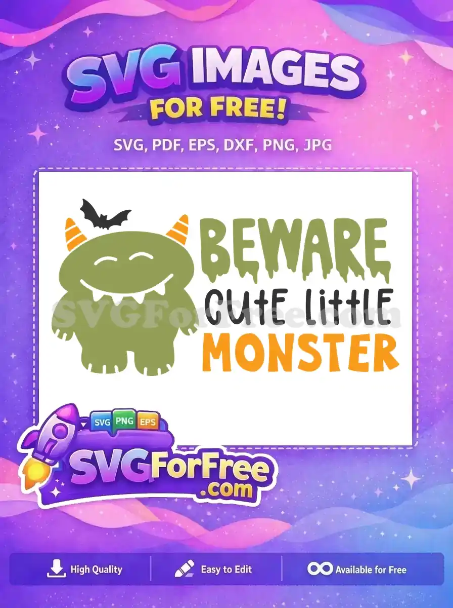 A warning to “BEWARE cute little MONSTER” accompanied by a small, toothy green monster. A free kids’ design.