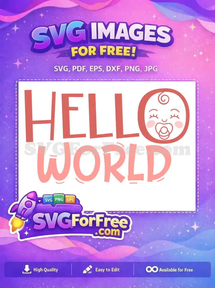 Free Smiling Pink Baby Free Pacifier Hello World Free SVG – Instant Download