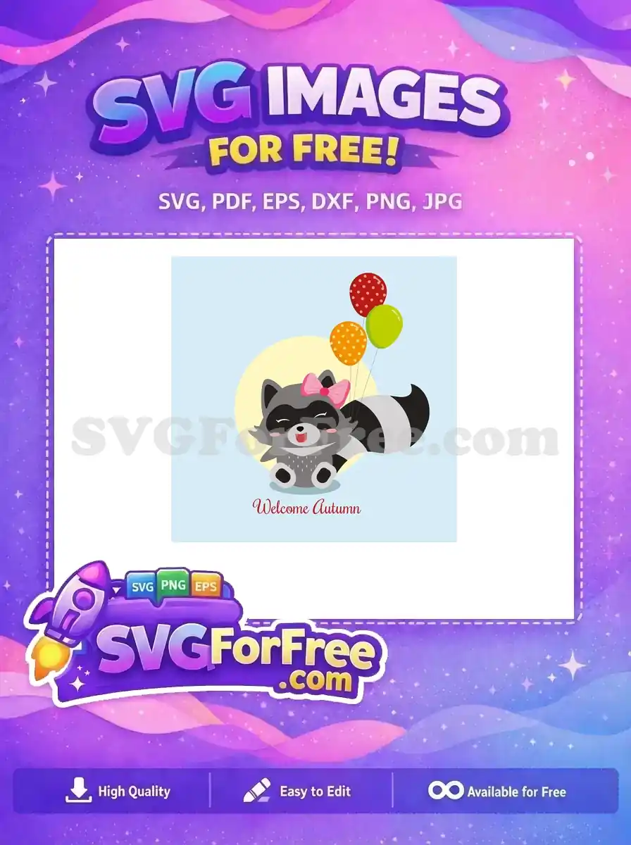 Free Smiling Raccoon Pink Bow Free Colorful Balloons Welcome Autumn Free SVG – Instant Download
