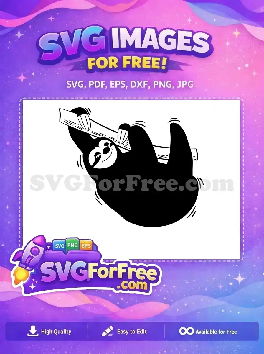 Free Smiling Sloth Hanging Free Black Silhouette Animal Free SVG – Instant Download