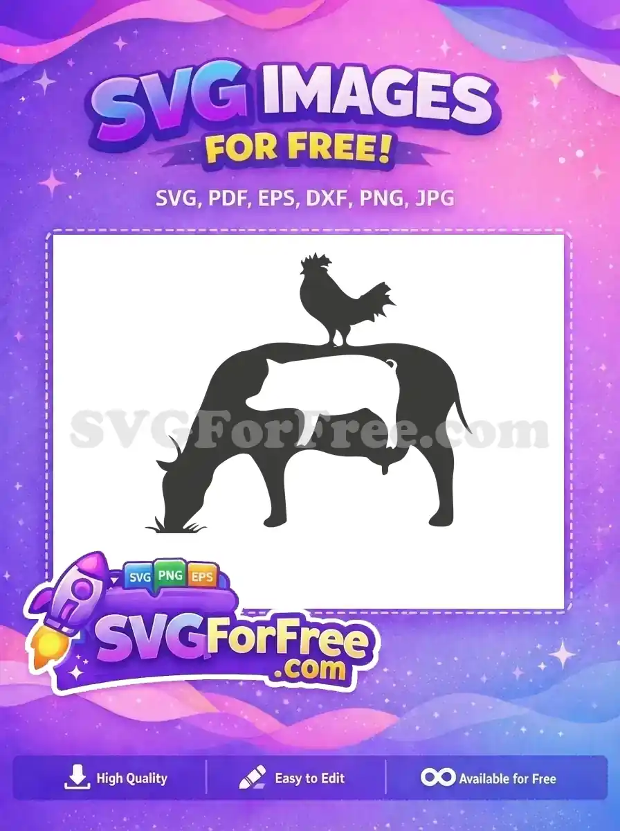 Free Stacked Animals Free Farm Cow Pig Rooster Free SVG – Instant Download