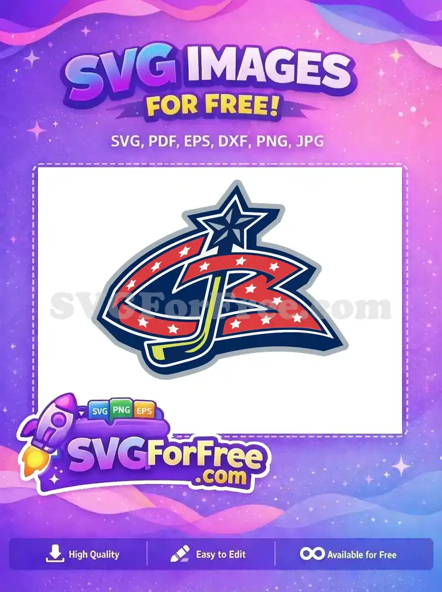A free vector of the Columbus Blue Jackets logo, a star-studded flag wrapped around the team’s initials.