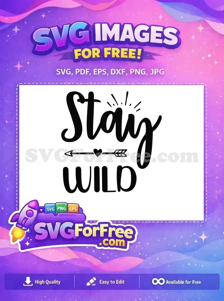 Embrace adventure with this captivating ‘Stay Wild’ free SVG design, featuring a charming heart arrow. Perfect for free-spirited creators!