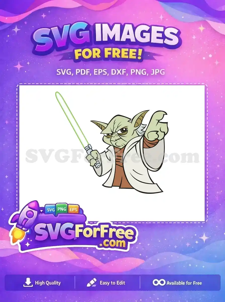 Get this fantastic free design featuring a powerful cartoon Yoda with his green lightsaber! Perfect for fans, this free SVG offers iconic appeal.