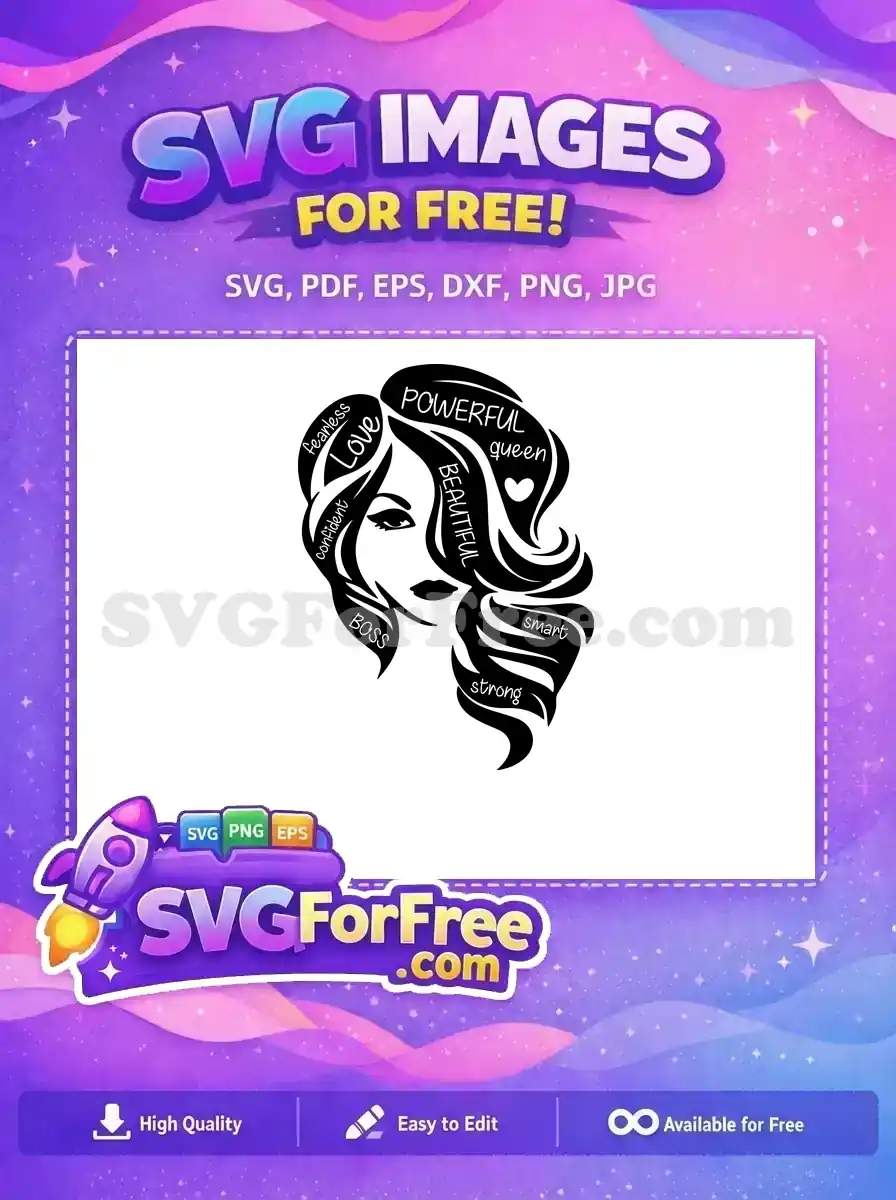 Celebrate feminine strength with this stunning free design featuring empowering words woven into a woman’s silhouette. Perfect for inspiring projects.