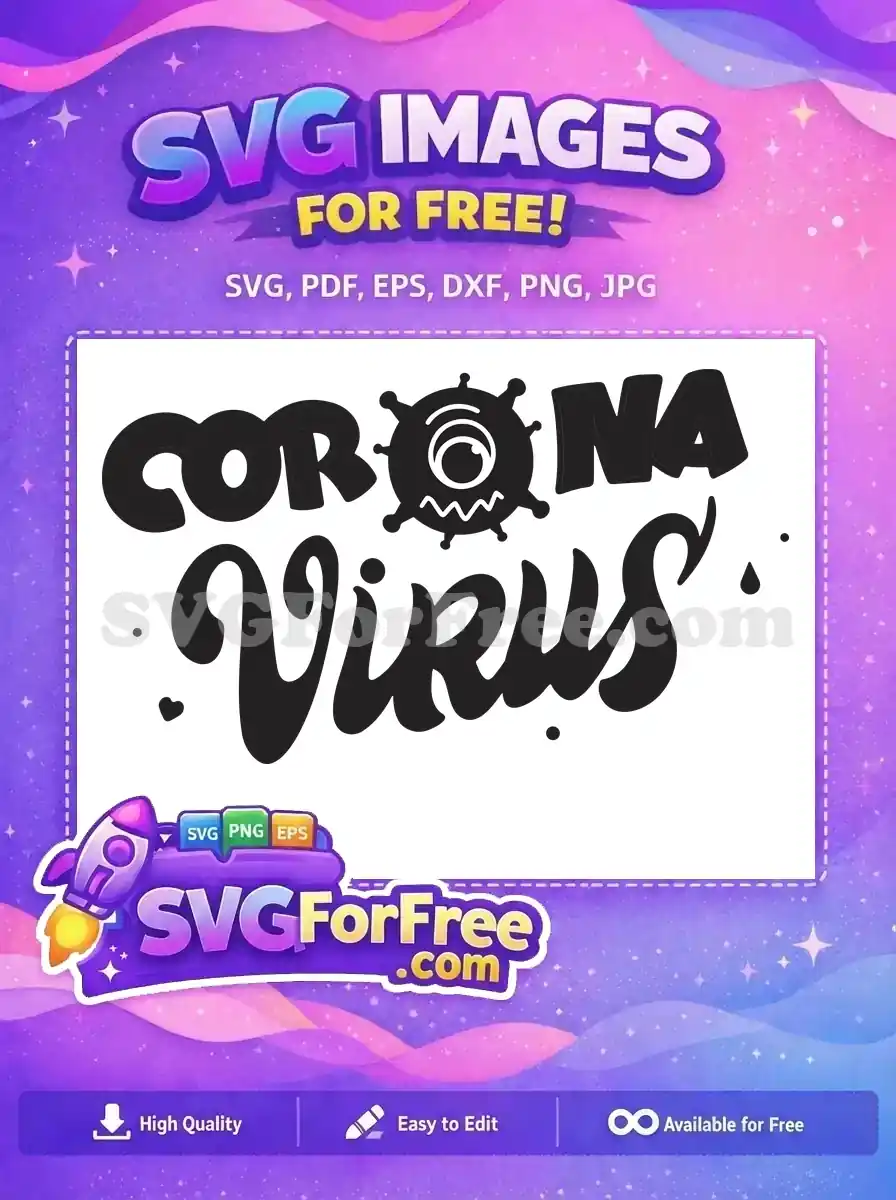 Free Stylized Corona Text Free Cute Virus Big Eye Coronavirus Quotes Free SVG – Instant Download