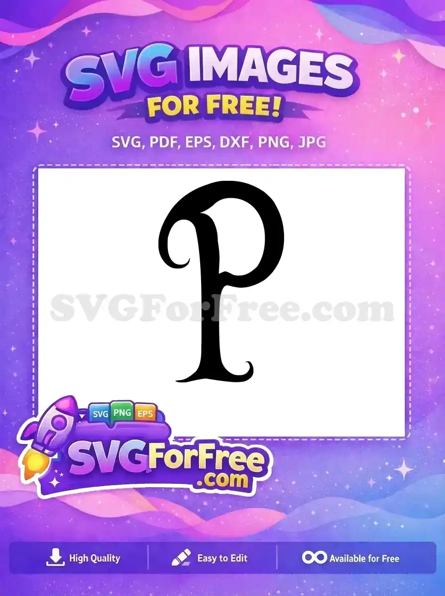 Quirky letter P with a curled descender and open bowl, ready as a free SVG for your designs.