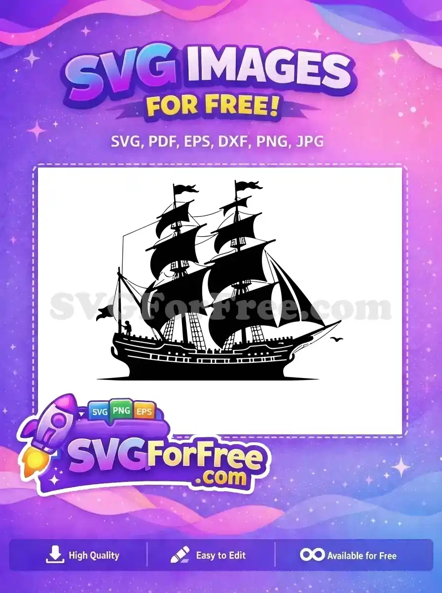Discover this majestic free tall ship SVG, perfect for nautical projects. A high-quality design available for immediate download!