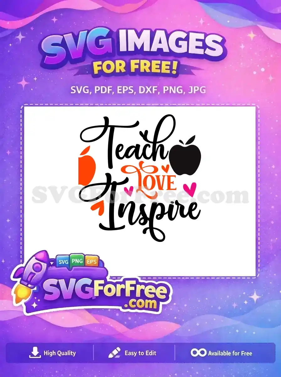 Free Teach Love Inspire Free Teacher Quotes Free SVG 1 – Instant Download