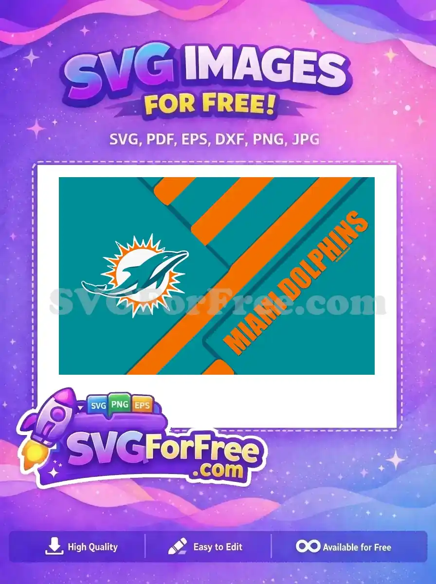 The Miami Dolphins logo set against a striped aqua and orange background. A vibrant, free sports graphic.