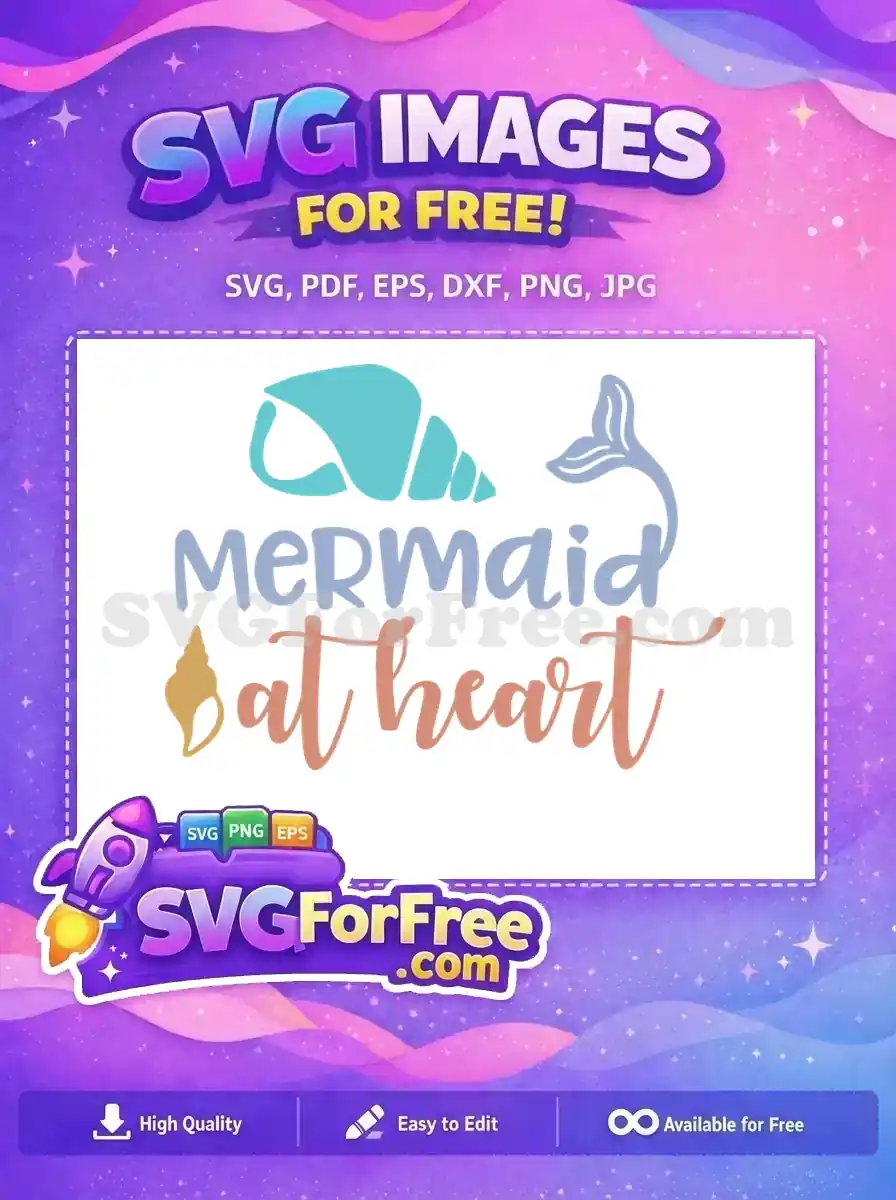 Pastel ‘Mermaid at heart’ typography with shell free svg.