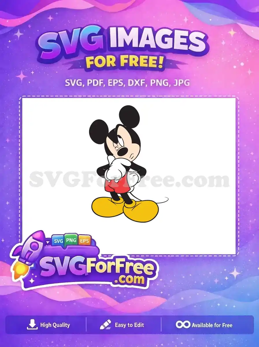 Free Thinking Mickey Mouse Free Red Shorts Cartoon Free SVG – Instant Download