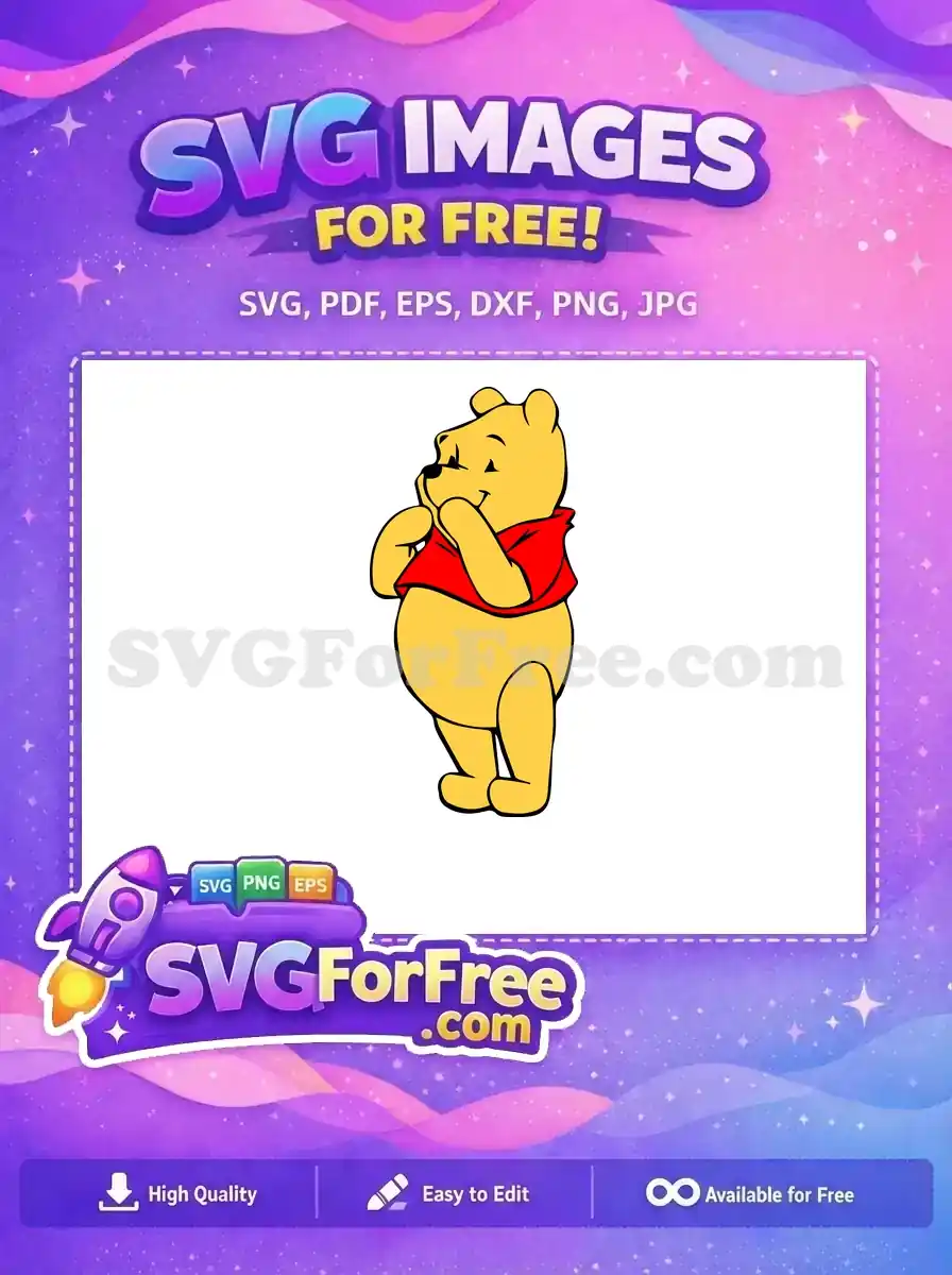Free Thinking Yellow Bear Free Red Scarf Winnie The Pooh Free SVG – Instant Download