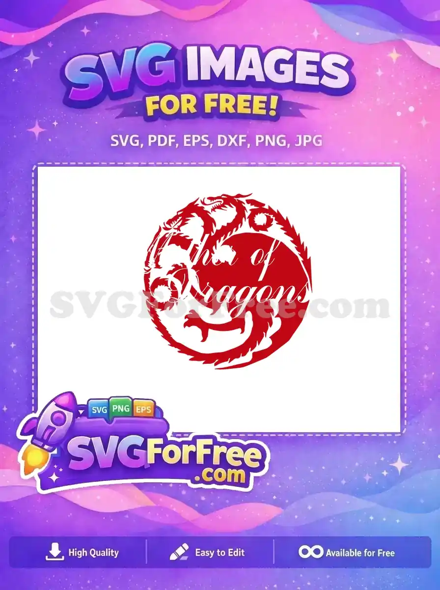 Red circular emblem with a dragon and ‘Mother of Dragons’ text. A stamp-style free fantasy SVG.