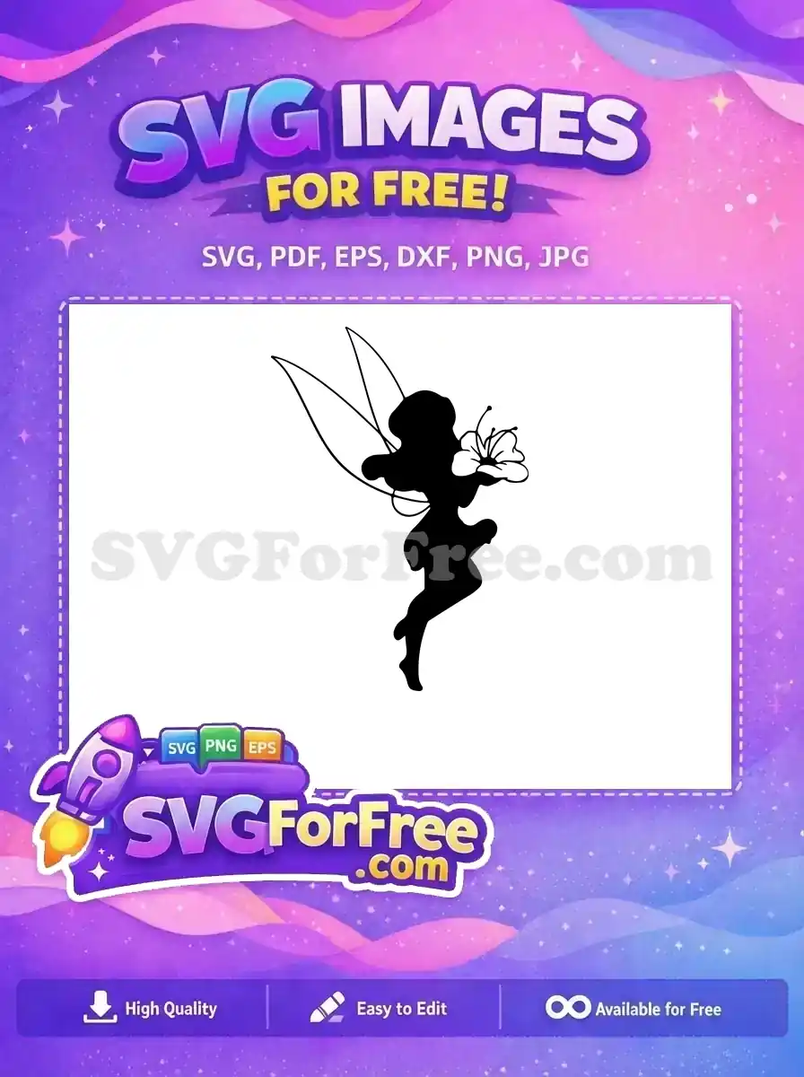 Free Tinkerbell Holding Flower Free Flying Silhouette Fairy Tale Free SVG – Instant Download