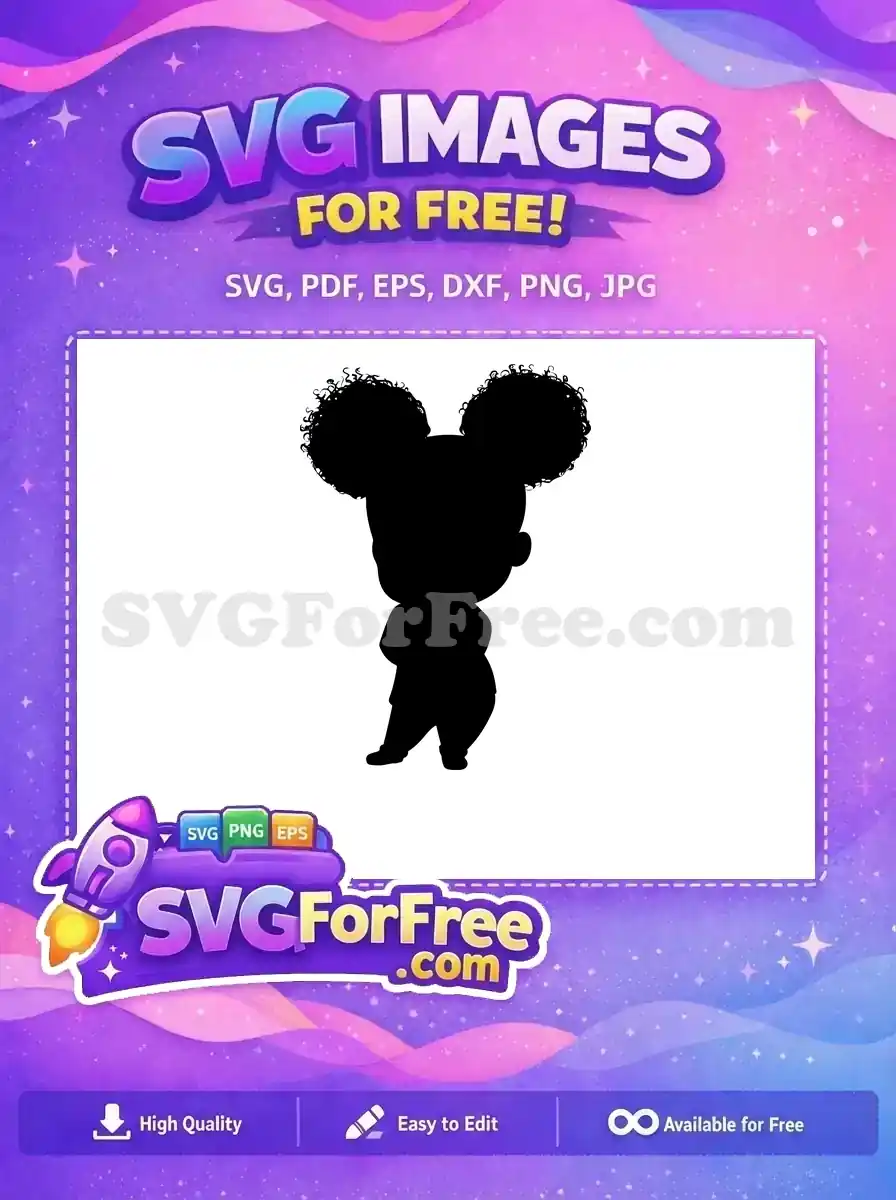 Adorable silhouette of a girl with afro puffs, offered as a complimentary graphic.