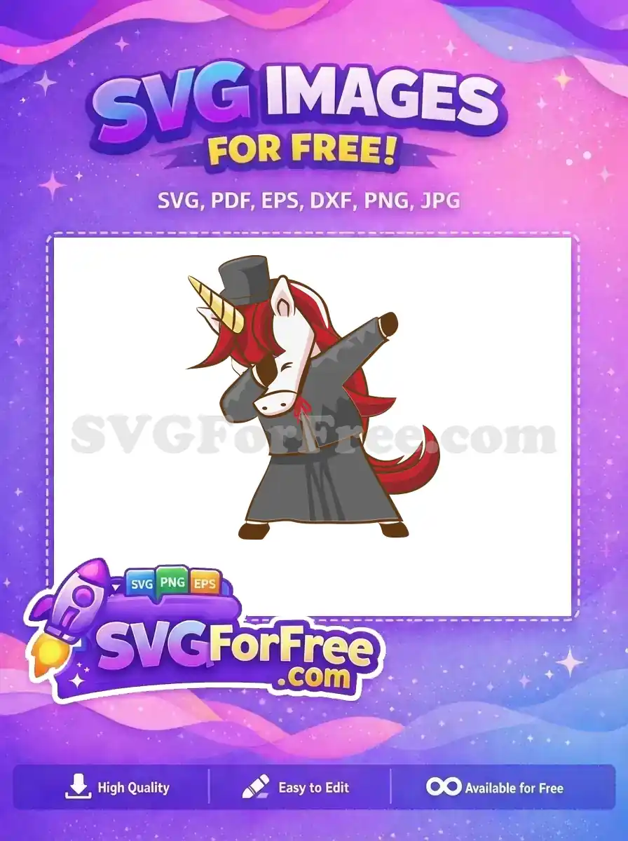 Free Top Hat Free Red Mane Dabbing Unicorn Free SVG – Instant Download