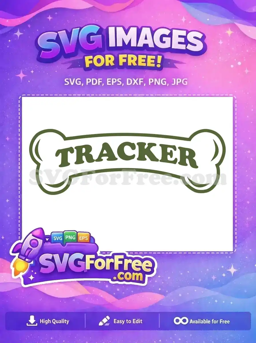 A green, bone-shaped name tag with the name ‘TRACKER’ written on it. A simple, free-to-use design element.