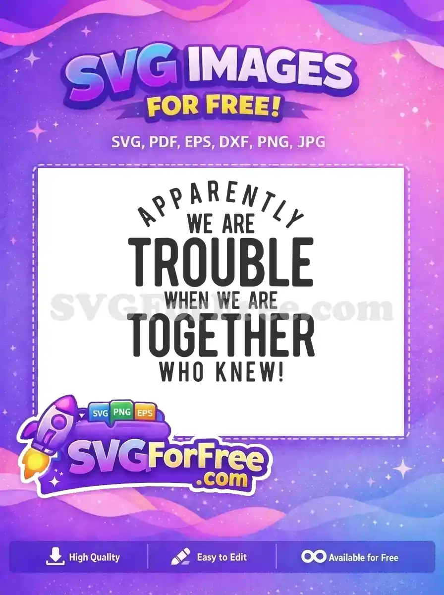Friendship humor ‘APPARENTLY WE ARE TROUBLE WHEN WE ARE TOGETHER’, a free vector.