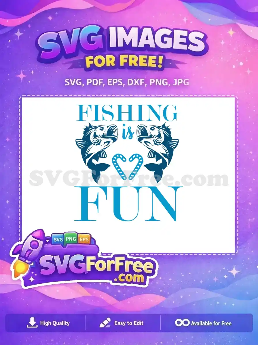 A free ‘FISHING is FUN’ graphic features two fish facing each other with water splashes around them.
