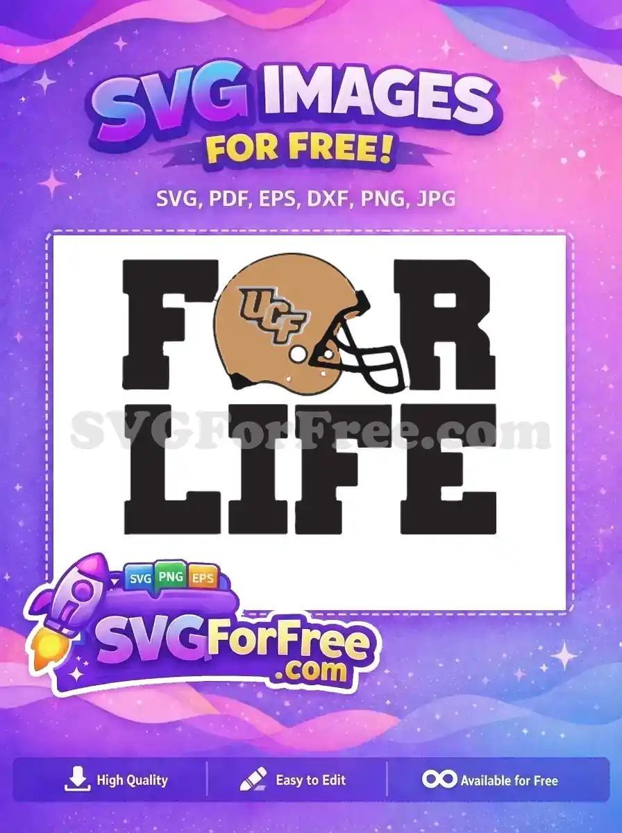 UCF Knights helmet with ‘For Life’ text, a bold free vector for college football fans.
