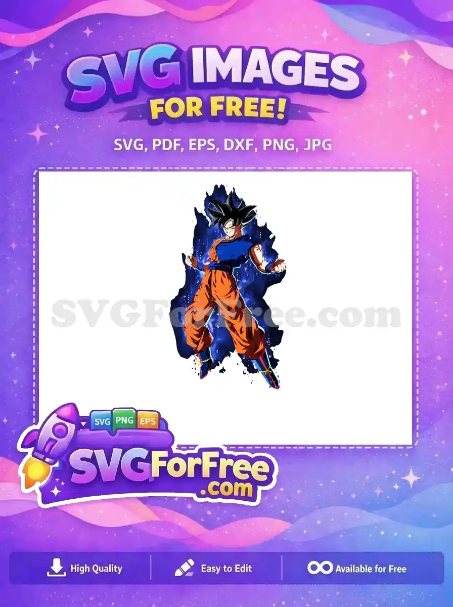 Experience the raw power of Ultra Instinct Goku with this incredible free SVG design, perfect for any anime fan!