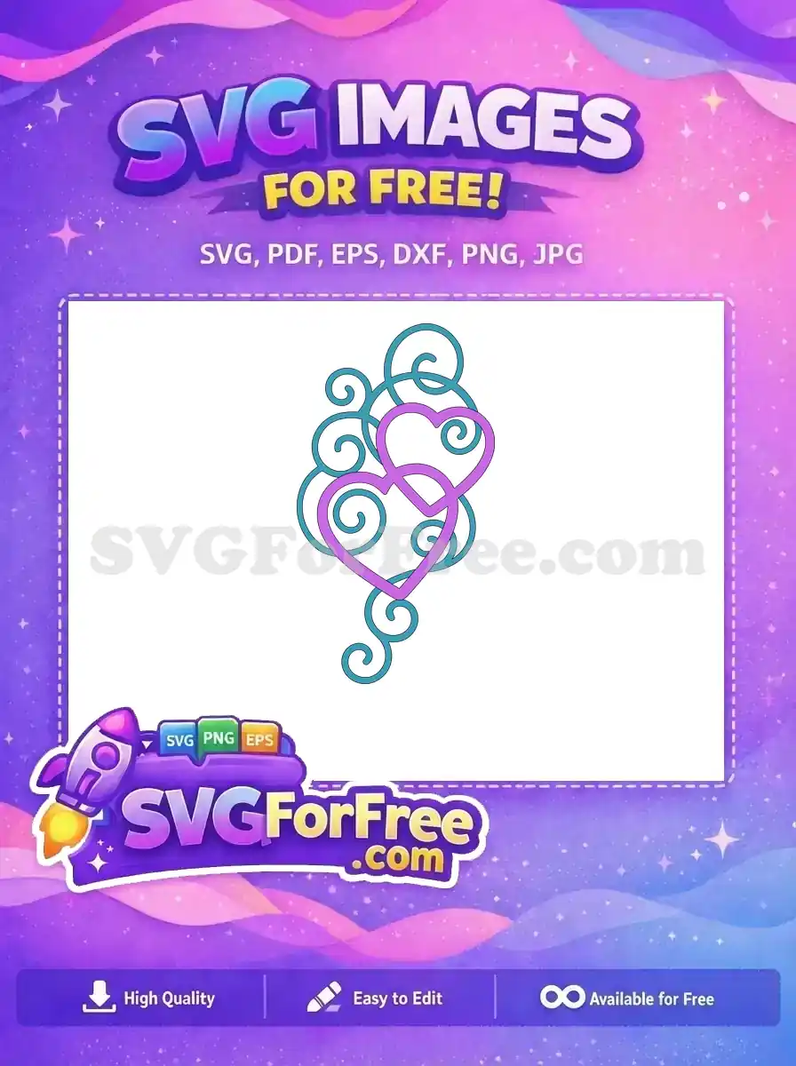 Free Violet Hearts Free Turquoise Flourish Valentine Free SVG – Instant Download