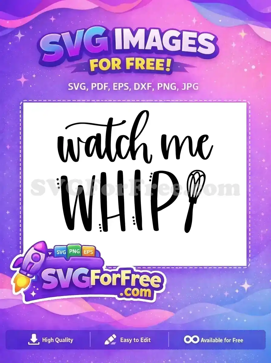 ‘Watch me Whip’ text with a kitchen whisk tool, a free baking graphic.