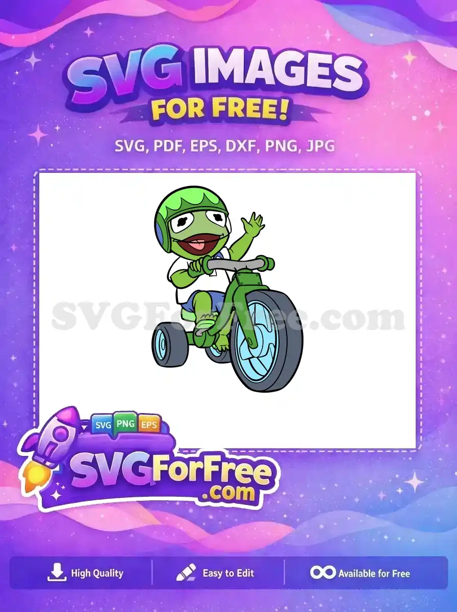 Free full-color vector of Baby Kermit riding a green tricycle.