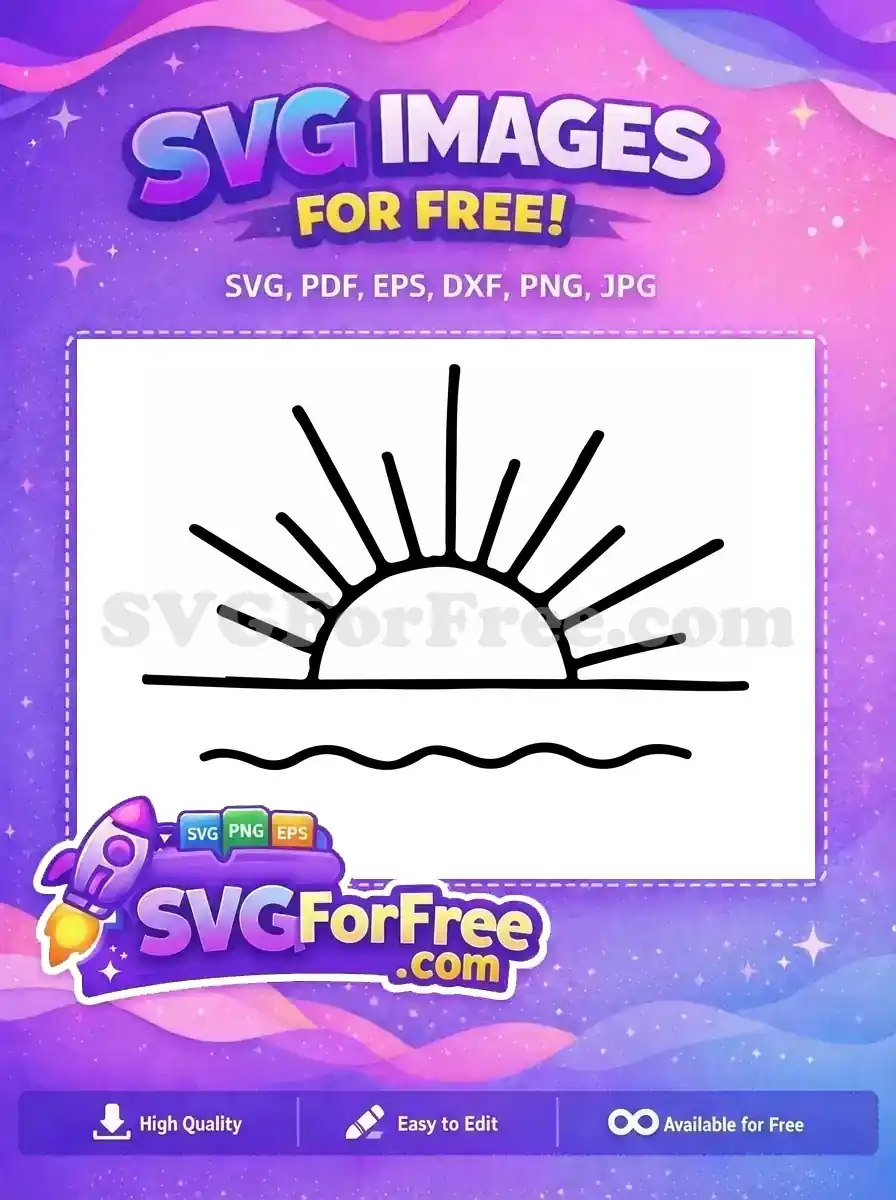 Free Wavy Ocean Line Art Free Black Minimalist Sunrise Scenery Free SVG – Instant Download