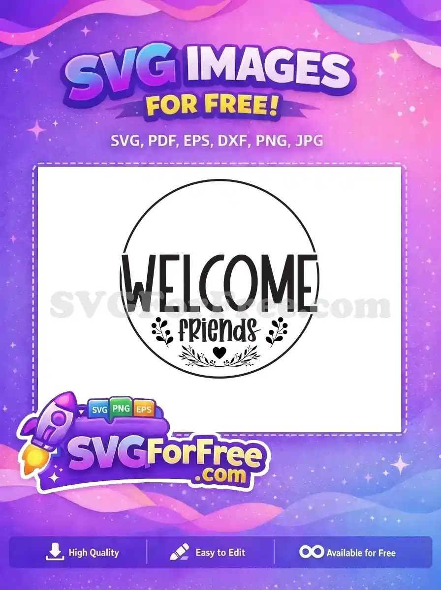 Circle frame Welcome Friends with leaves. A friendly free svg for porches.