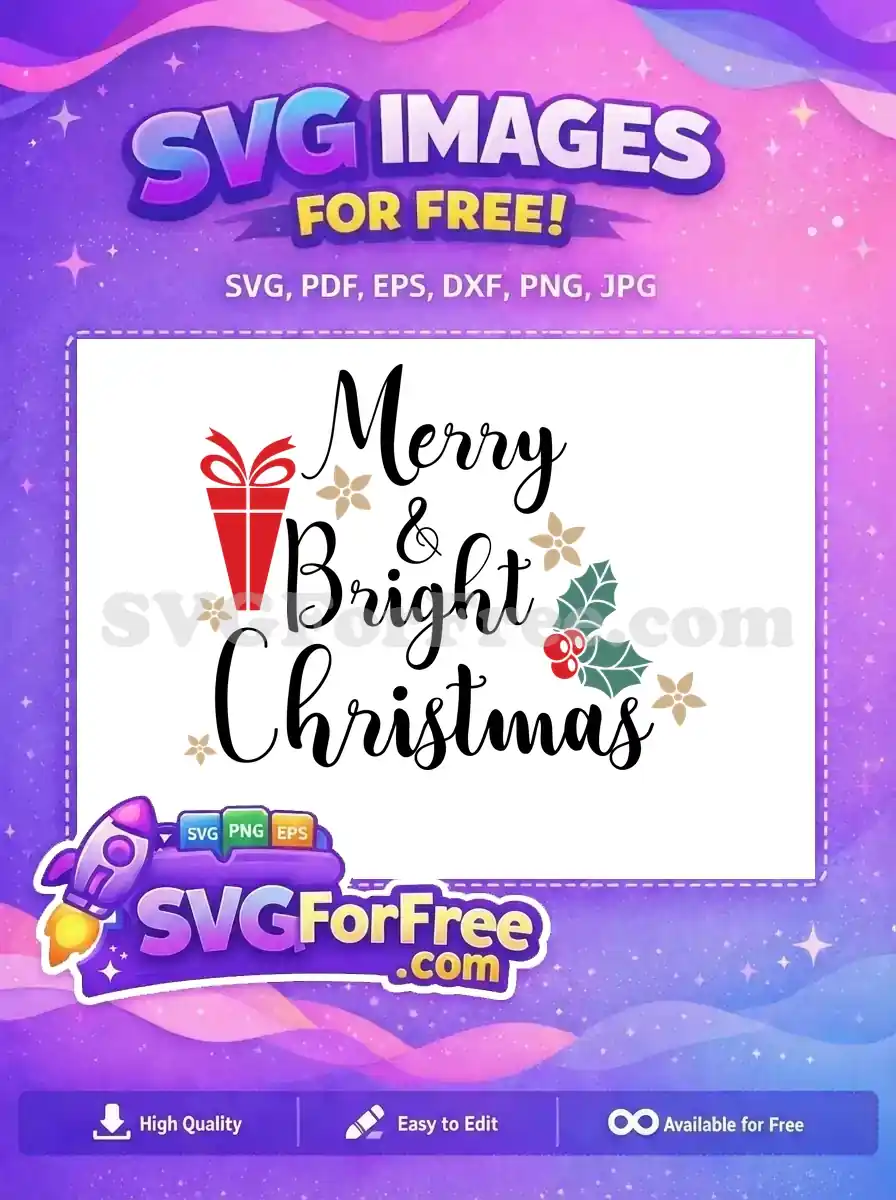 A festive “Merry & Bright” quote with a cute gift box illustration, a delightful and free-to-use file.