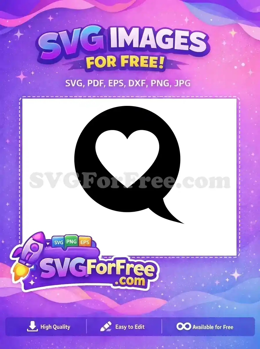 A solid black, round speech bubble with a crisp white heart cut out from its center. A free graphic.