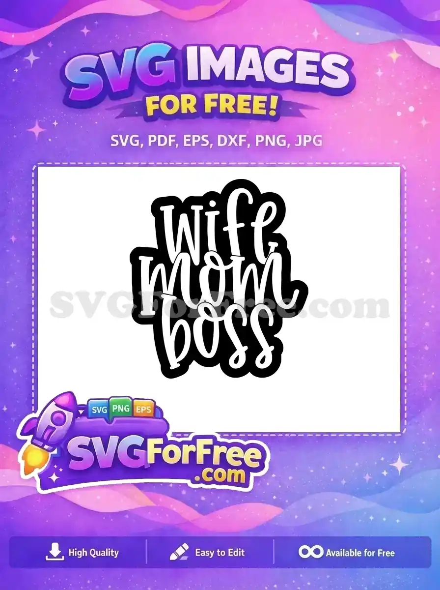 Interlocking ‘Wife Mom Boss’ text with a bold outline style, available as a free design resource.