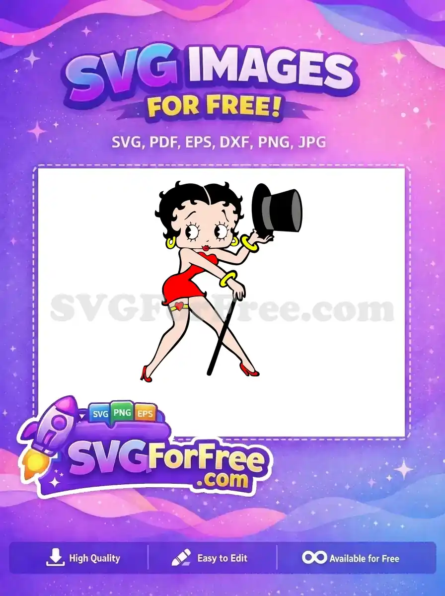 Free Winking Red Free Top Hat Cane Betty Boop Free SVG – Instant Download