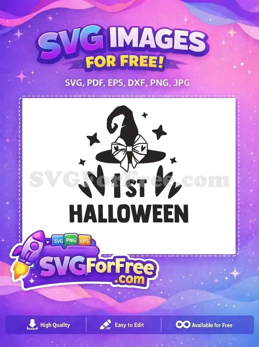 Celebrate a milestone with this “1st HALLOWEEN” design, featuring a witch hat and stars. A free, cute graphic.