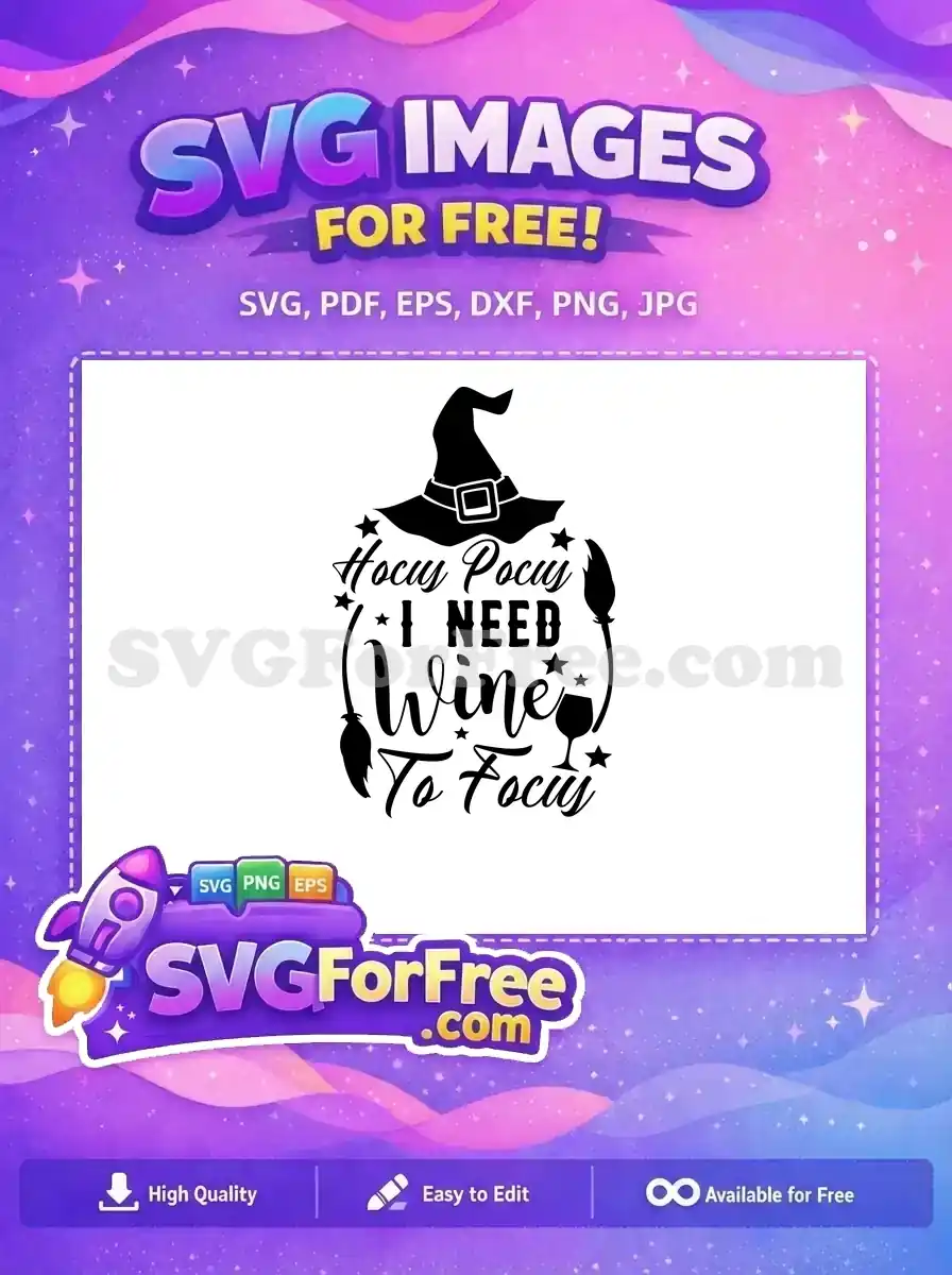 Free Witch Hat Broom Free Funny Wine Saying Hocus Pocus Free SVG – Instant Download